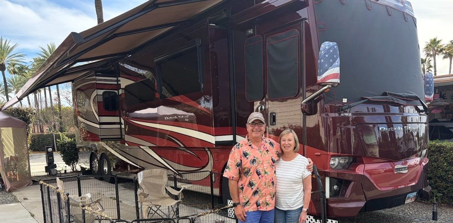 When we tell people that we live in a motorhome full time, they say; “Wow! That’s so cool! We would NEVER do that.” We call that envy without regret. We heard that there are about a million people who live some variation of what we do. We spend 5 months in a campground in Connecticut to be near our children and grandchildren, then we spend 5 months in Southern California as snowbirds (in the UK the term is sun chasers) to be near Ruth’s brother and his family. We take a month to cross the country, usually in April and November. We have crossed the country 12 times on some configuration of the east/west interstates. We began our adventure 6 years ago. We travel with our 2 Cairn Terriers (like Toto from the Wizard of Oz). Our motorhome has spent the night in all but 3 of the contiguous states: Maine, Washington, and Oregon. We have a “Boston Lobster” stuffed-toy as a mascot that allows us to include Hawaii and Alaska on our travel map (our map, our rules).