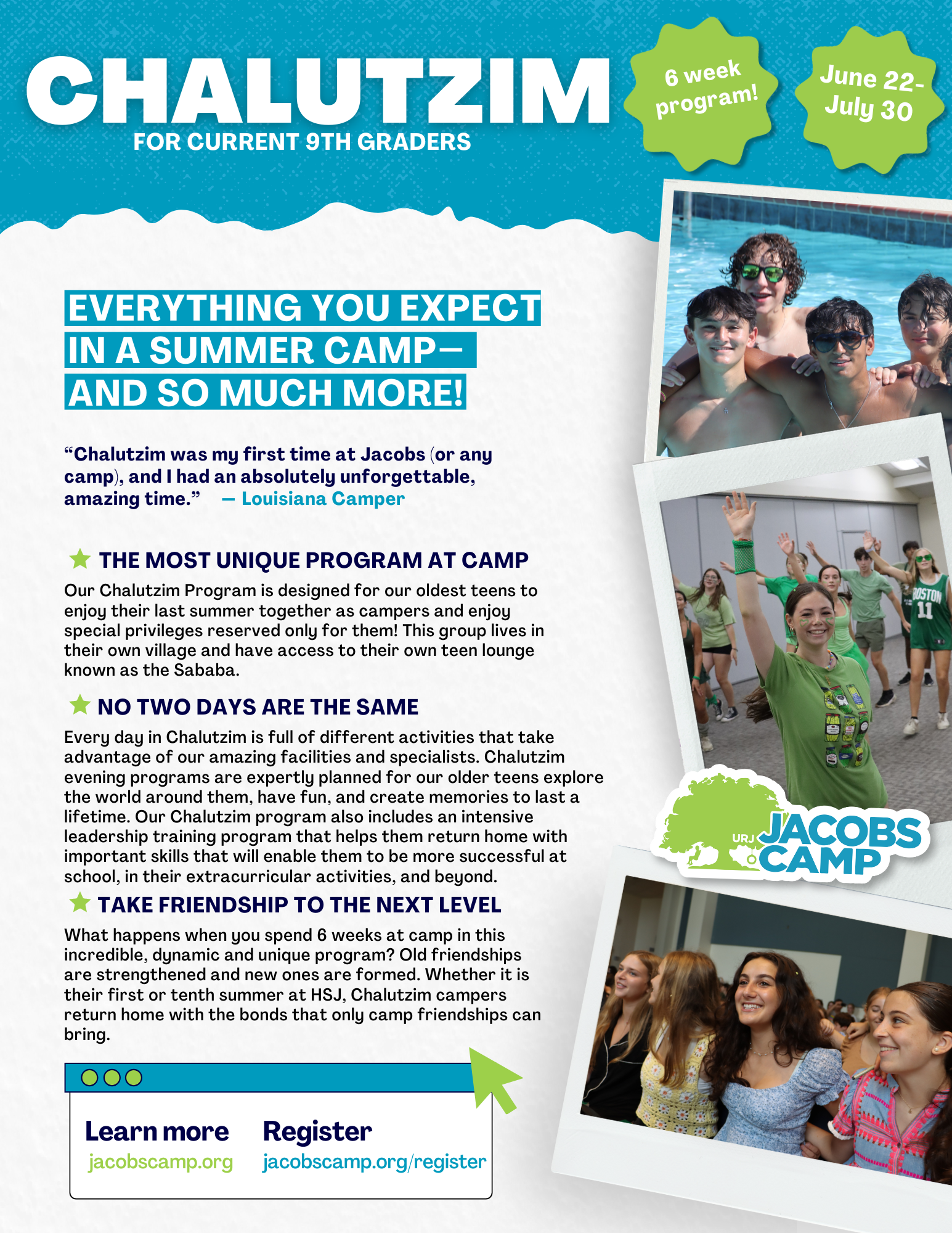 Jacobs Camps is part of the Union for Reform Judaism family of camps and youth programs.