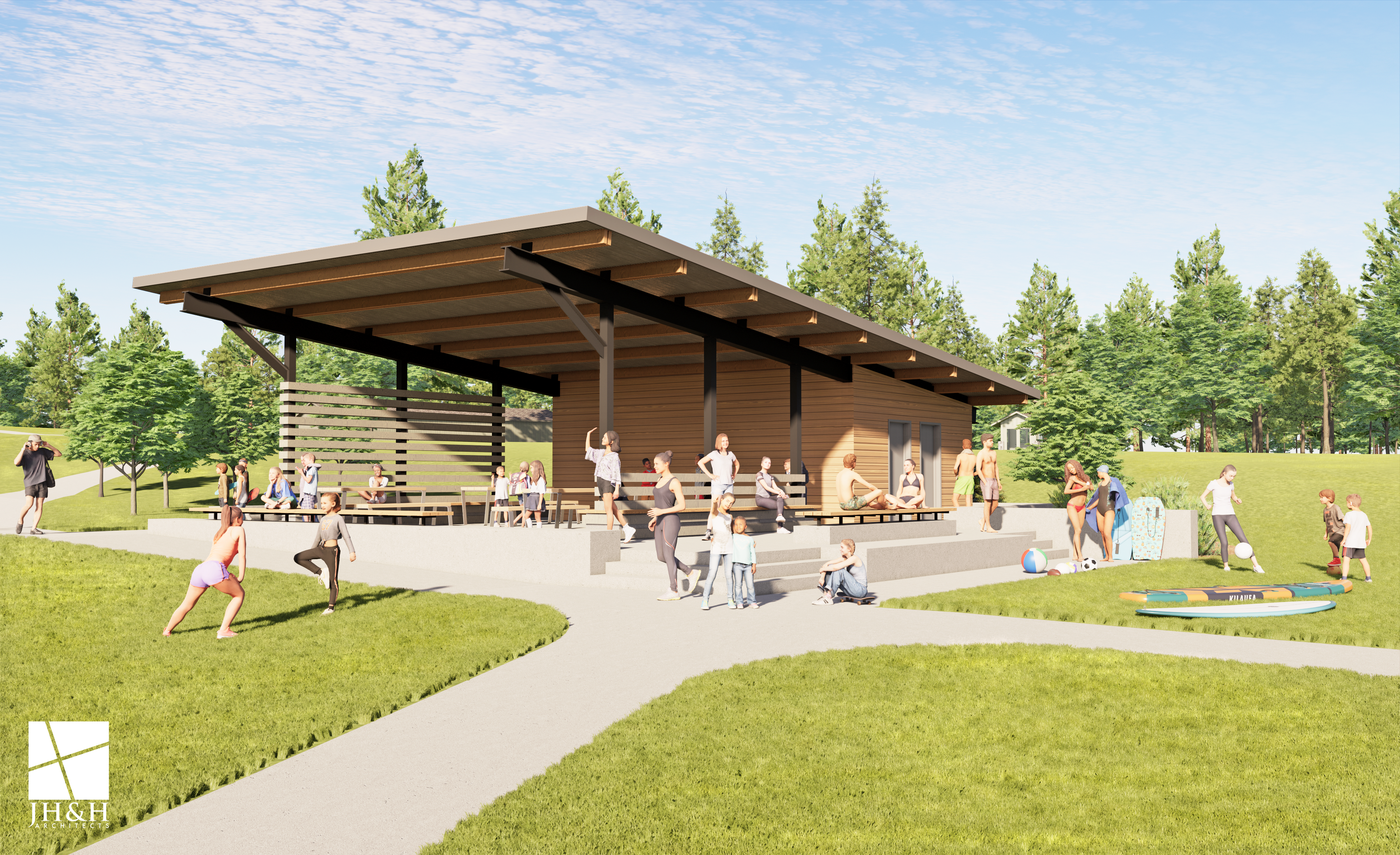 To enhance this treasured space, Jacobs Camp will create a permanent pavilion at the lakefront, providing shade, accessibility, and versatility for daily activities and evening programs.